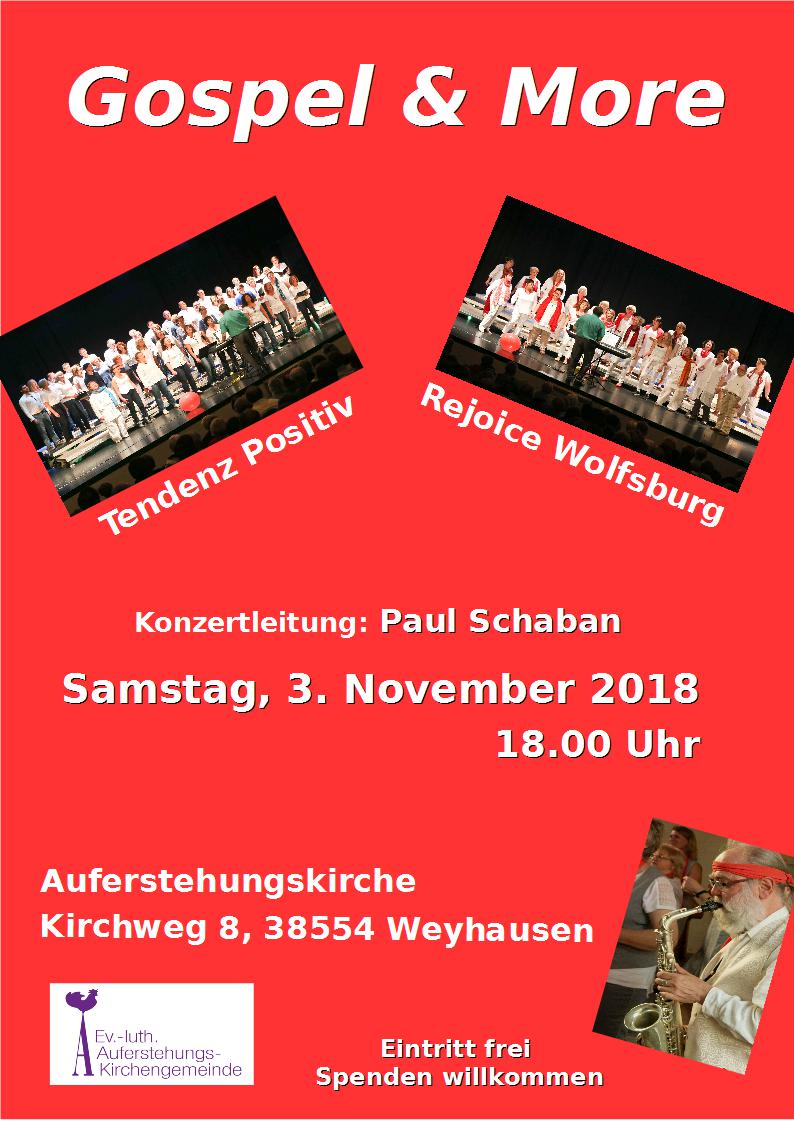 Ursprünglicher Anlass für dieses Konzert war, dass im Januar 2019 in der ev.-luth. Auferstehungs-Kirchengemeinde ein neuer Gospelchor gegründet werden sollte, dessen Leitung Paul Schaban