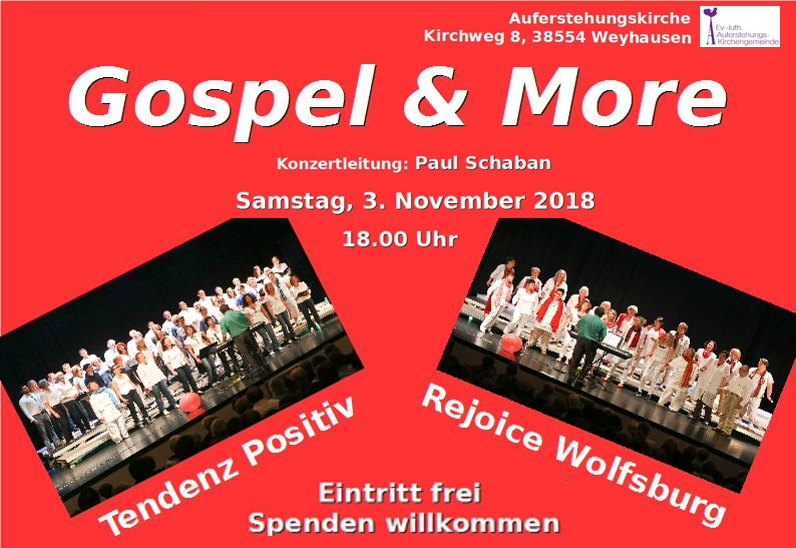 Tendenz Positiv gibt gemeinsam mit Rejoice Konzert "Gospel & More" am 03.11.2018 in Weyhausen